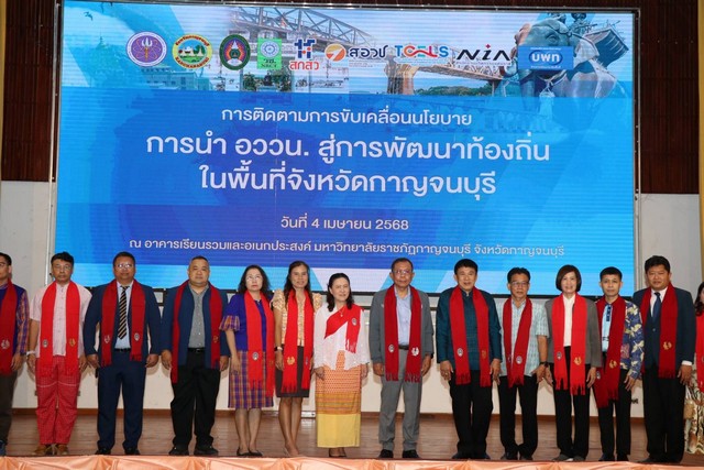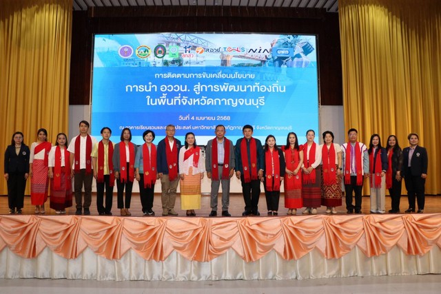 วันที่ 4 เมษายน 2568 ณ จังหวัดกาญจนบุรี นายศุภชัย ใจสมุทร ผู้ช่วยรัฐมนตรีประจำกระทรวงการอุดมศึกษา วิทยาศาสตร์ วิจัยและนวัตกรรม พร้อมคณะฯ ลงพื้นที่การดำเนินงานขับเคลื่อนงานด้าน อววน. ในพื้นที่จังหวัดกาญจนบุรี ในพื้นที่จังหวัดกาญจนบุรี และมหาวิทยาลัยราชภัฏกาญจนบุรี โดยมีว่าที่ร้อยตรีศุภมงคล บูชาถ่ายเทศ รองผู้ว่าราชการจังหวัดกาญจนบุรี ผู้ช่วยศาสตราจารย์ ดร.พจนีย์ สุขชาวนา อธิการบดีมหาวิทยาลัยราชภัฏกาญจนบุรี พร้อมด้วย ผู้บริหาร หน่วยงานภาครัฐ ภาคเอกชน องค์กรปกครองส่วนท้องถิ่น นักวิจัย คณาจารย์ นักศึกษา พี่น้องประชาชนชาวจังหวัดกาญจนบุรี และสื่อมวลชน