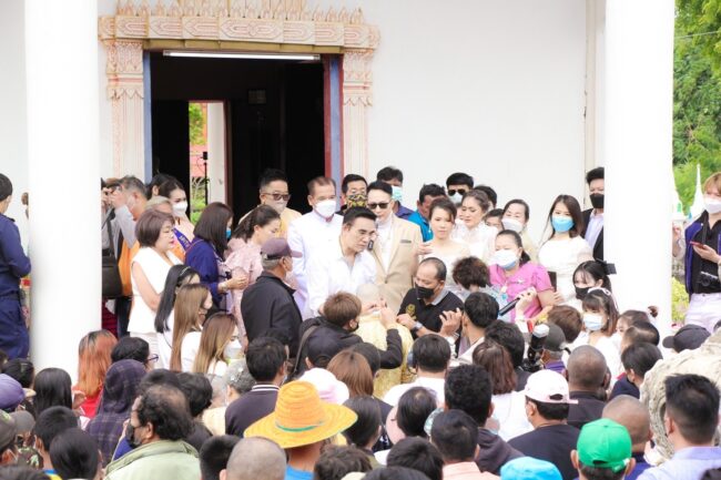 ได้เชิญ “นายทศพล หิมพานต์ ” ราชาเพลงแหล่ มาเป็นผู้ทำพิธีโกนผมนาค ตอนเย็นมีนักร้องชื่อดังหลายคน มาร่วมงานฉลอง เช่นต่าย อรทัย ,มนต์สิทธิ์ คำสร้อย และรุ่ง สุริยา