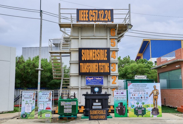 หม้อแปลงใต้น้ำ (Submersible Transformer) รางวัลนวัตกรรมแห่งชาติ NiA ผ่านการทดสอบการจมน้ำ (3 m.) ต้านทานได้ถึง 5 เมตร ตามมาตรฐานอเมริกา IEEE Std.C57.12.24-2016 – IEEE Std.C57.12.24-2009 รับรองโดยมหาวิทยาลัยเทคโนโลยีพระจอมเกล้าธนบุรี และติดตั้งใช้งานจริงที่จังหวัดเชียงใหม่เป็นระยะเวลา 5 ปี อีกทั้งได้ผ่านการใช้งานในสภาวะน้ำท่วมขังเกือบ 2 เมตร ในขนาดที่จ่ายไฟและสามารถใช้งานได้ปกติไม่พบความเสียหายจากวิกฤตน้ำท่วมครั้งนี้