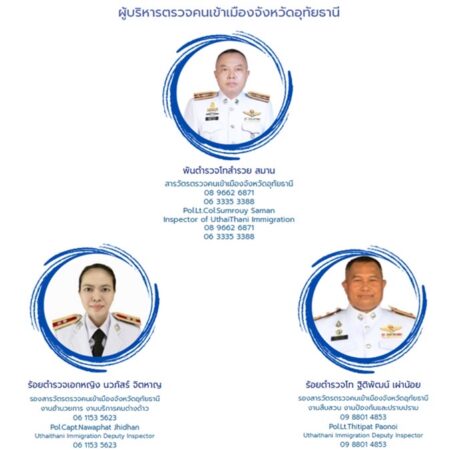 3.โทรศัพท์หมายเลข : 0 5651 0623,08 9662 6871 ,0633353388 พันตำรวจโทสำรวยสมาน สารวัตรตรวจคนเข้าเมืองจังหวัดอุทัยธานี