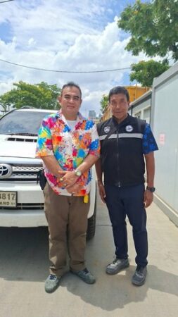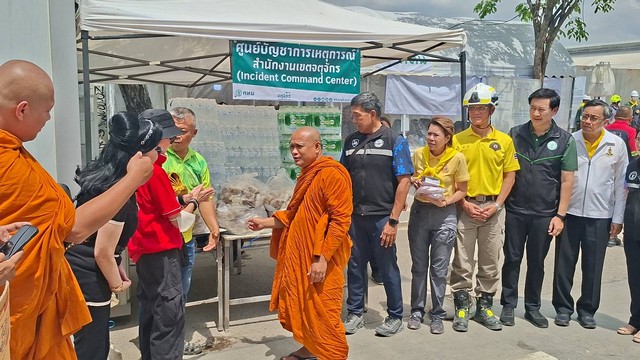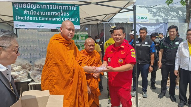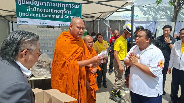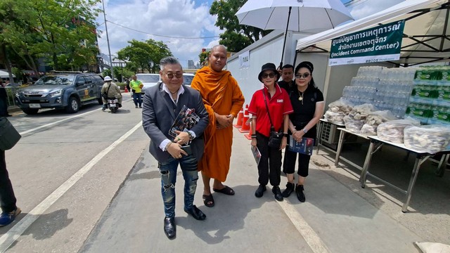 กรรมการสมาคมสื่อสร้างสรรค์เพื่อสังคมนำ ตัวแทนหลวงปู่ศิลา และ คณะ มอบวัตถุมงคลของบริจาค ให้กับเจ้าหน้าที่ ที่เกี่ยวข้อง เกี่ยวกับการให้ความช่วยเหลือ ตึกสตง.ถล่ม